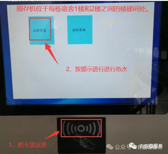 第三步:持卡到热水圈存机按说明将费用圈存到“热水小钱包”,建议每次圈存的金额不宜过多。